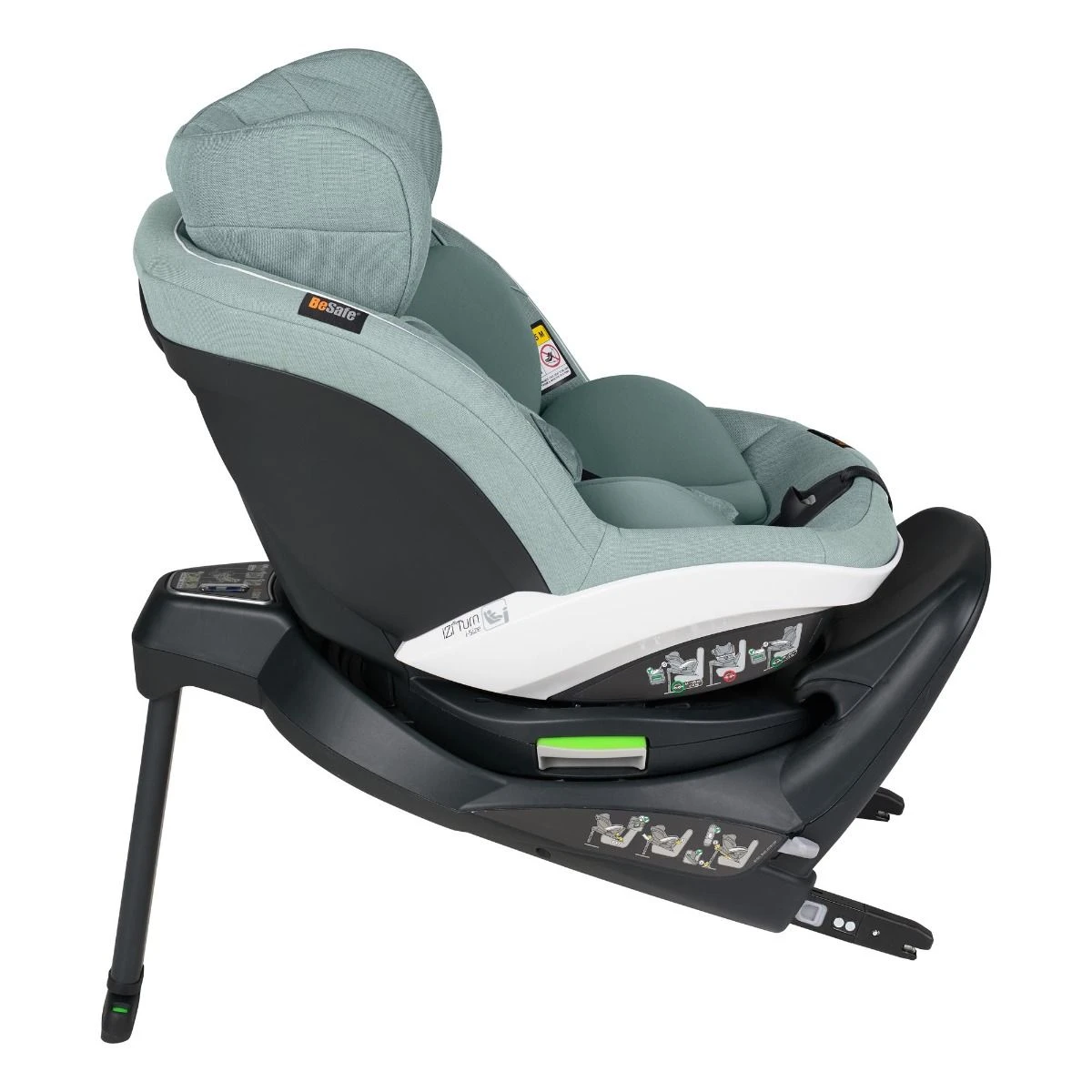 De Besafe iZi Turn i-Size kan full option roteren, de volledige 360°! Dat wil zeggen dat je je kindje zowel tegen als met de rijrichting mee kan vervoeren. De stoel is bruikbaar vanaf dat je kindje 5-6 maanden oud is (61cm) tot ongeveer 4 jaar (105cm).