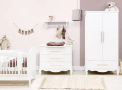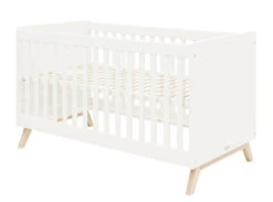 Bopita 2-Delige babykamer van de serie Indy kenmerkt zich door de combinatie van wit en naturel gelakte houten accenten. Dit geeft de babykamer een eigentijdse uitstraling. De 2-delige babykamer bestaat uit een ledikant en een commode. De bodem van het ledikant is in hoogte verstelbaar. Zodra het kind groter wordt, of zichzelf kan optrekken aan de spijlen, kan je de bodem verlagen. Zo blijft het bed een veilige plek. Combineer deze kamer met bijvoorbeeld het wandelement van Indy. Zo creëer je eenvoudig nog meer opslagruimte boven de commode.