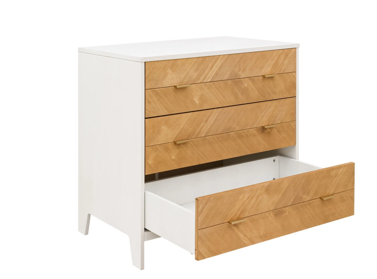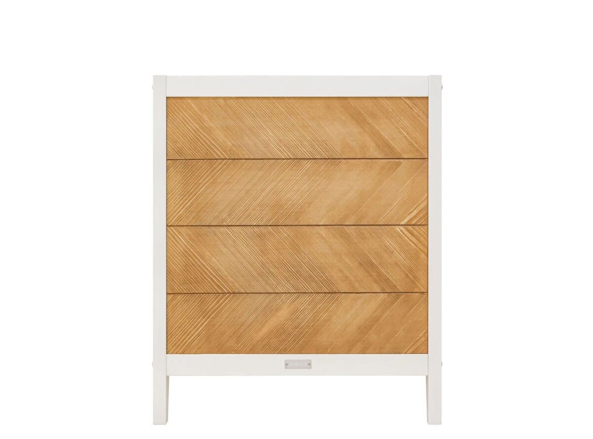 Met de 2-delige Bopita Isa haal je een moderne kinderkamer in huis. De combinatie van wit en gefineerd hout met visgraat motief zorgt voor een warme look. Omdat hout een natuurproduct is, kan de houtstructuur per product verschillen.