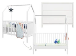Ben je opzoek naar een moderne babykamer die in elk interieur past, dan past Bopita babykamer Corsica helemaal bij jou. De 2-delige babykamer bestaat uit een trendy huisjes ledikant en commode.