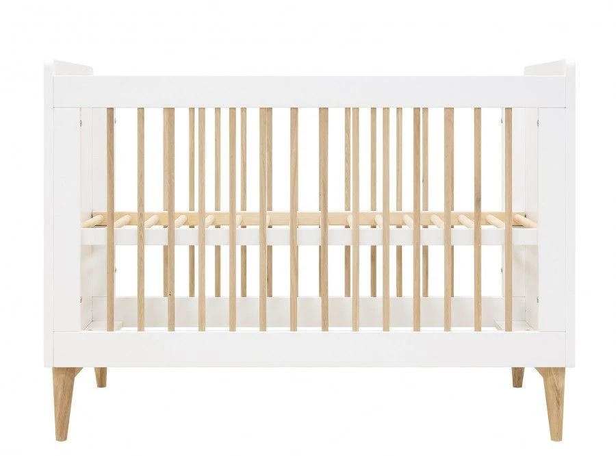 Bopita 2-Delige babykamer van de serie Paris kenmerkt zich door de diagonale groeven in de meubelpanelen en de eiken poten. De 2-delige babykamer bestaat uit een ledikant en een commode. De bodem