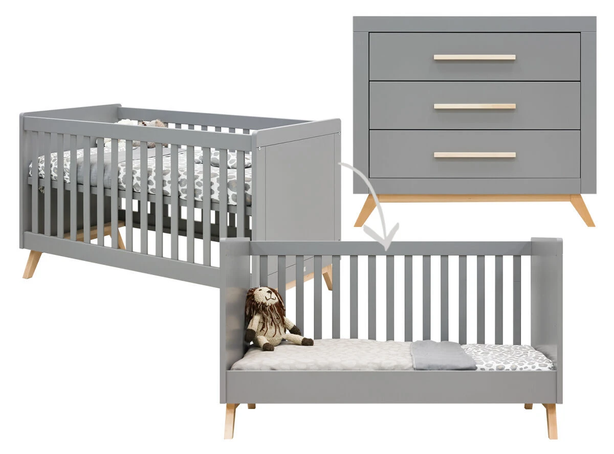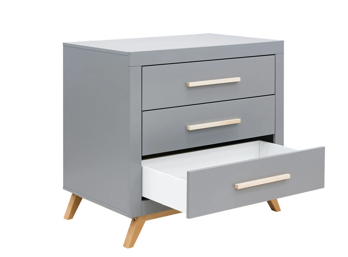 Bopita 3-delige babykamer van de serie Fenna. Deze babykamer bestaande uit een bed 60 x 120 cm, een commode met 3 laden en een 2-deurskast. Deze babykamer heeft een Scandinavische / eigentijdse