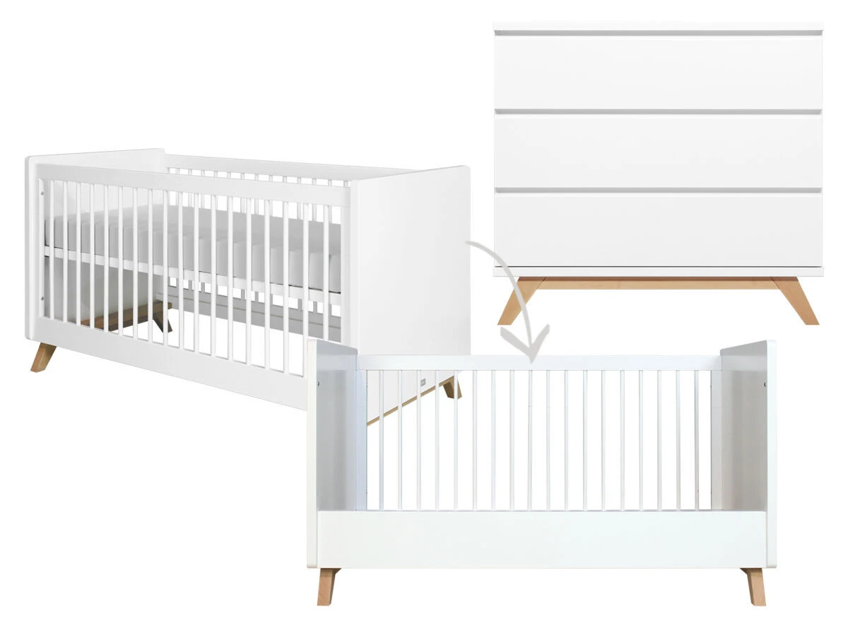 Bopita 2-Delige babykamer van de serie Lynn Greeploos kenmerkt zich door de strakke lijnen en beuken houten pootjes. Hierdoor heeft de babykamer een eigentijdse Scandinavische look. De 2-delige