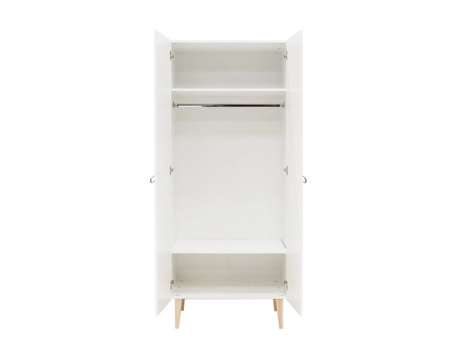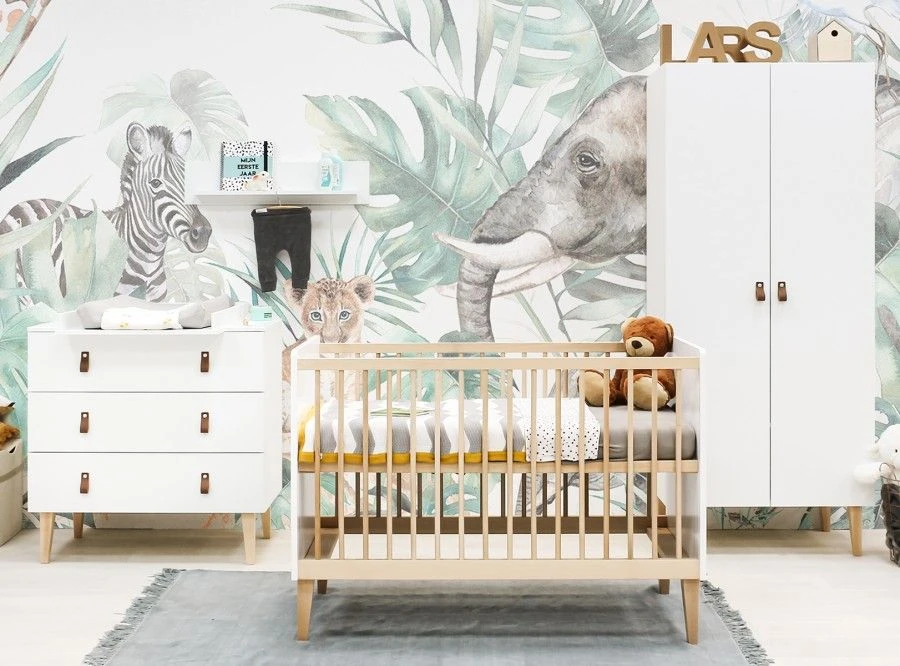 Bopita 3-Delige babykamer van de serie Indy kenmerkt zich door de combinatie van wit en naturel gelakte houten accenten. Dit geeft de babykamer een eigentijdse uitstraling. De 3-delige babykamer bestaat uit een ledikant, commode en 2-deurskast. De bodem van het ledikant is in hoogte verstelbaar. Zodra het kind groter wordt, of zichzelf kan optrekken aan de spijlen, kan je de bodem verlagen. Zo blijft het bed een veilige plek. Combineer deze kamer met bijvoorbeeld het wandelement van Indy. Zo creëer je eenvoudig nog meer opslagruimte boven de commode.