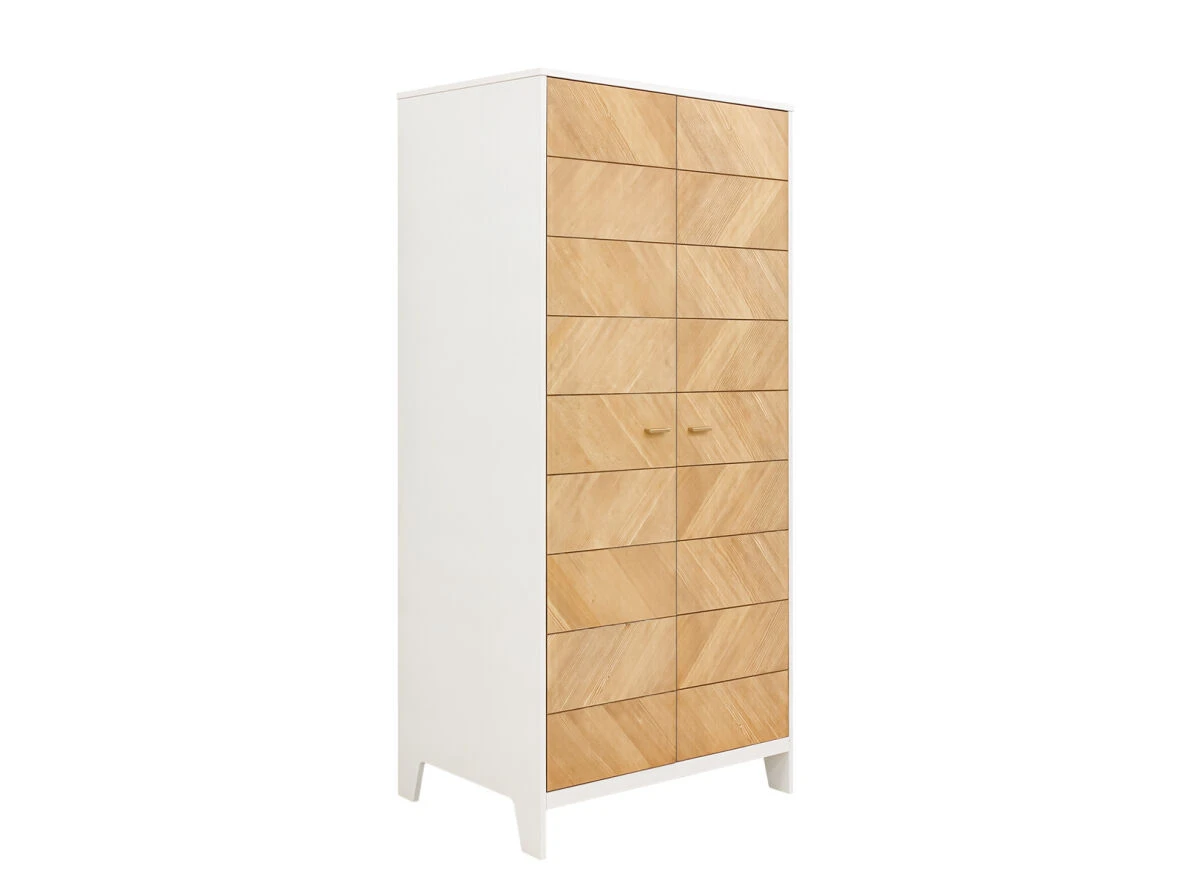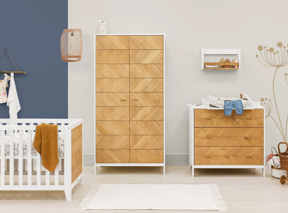 Met de 3-delige Bopita Isa haal je een moderne kinderkamer in huis. De combinatie van wit en gefineerd hout met visgraat motief zorgt voor een warme look. Omdat hout een natuurproduct is, kan de houtstructuur per product verschillen.