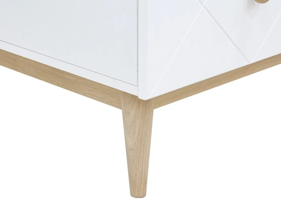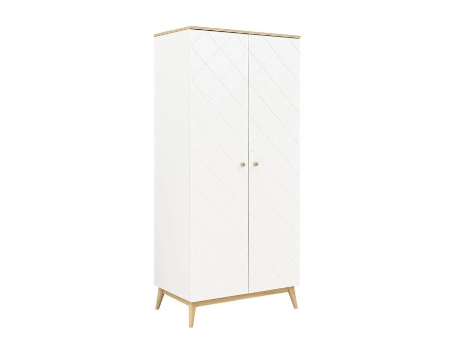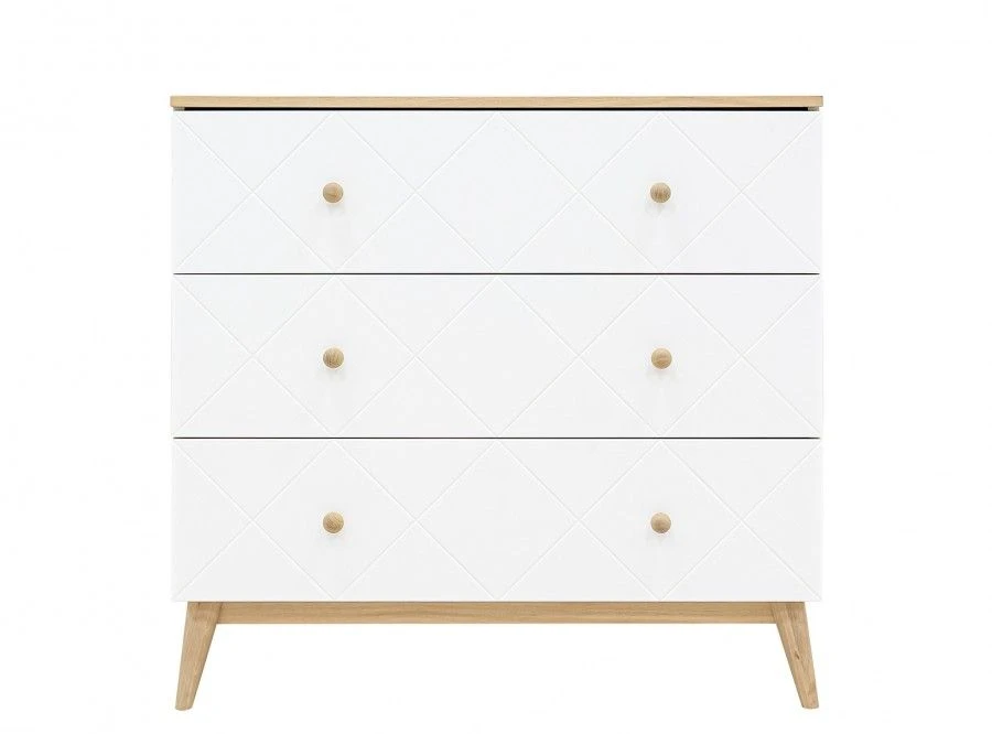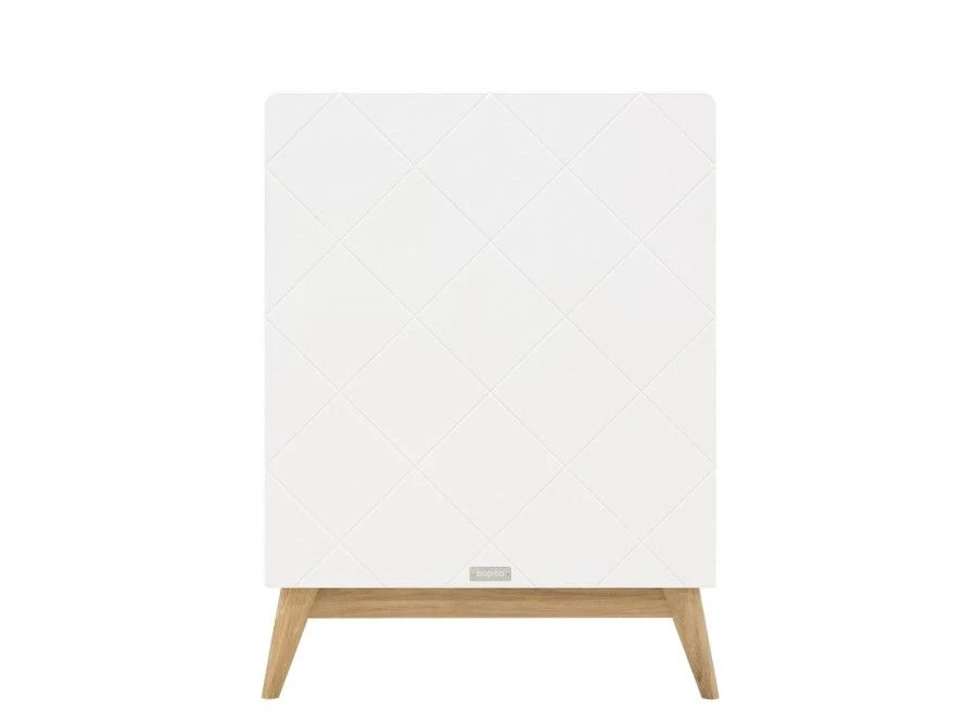 Bopita 3-Delige babykamer van de serie Paris kenmerkt zich door de diagonale groeven in de meubelpanelen en de eiken poten. De 3-delige babykamer bestaat uit een ledikant, commode en een 2-deurskast. De bodem van het ledikant is in hoogte verstelbaar. Zodra het kind groter wordt, of zichzelf kan optrekken aan de spijlen, kan je de bodem verlagen. Zo blijft het bed een veilige plek. Combineer deze kamer met bijvoorbeeld het wandelement van Paris. Zo creëer je eenvoudig nog meer opslagruimte boven de commode.