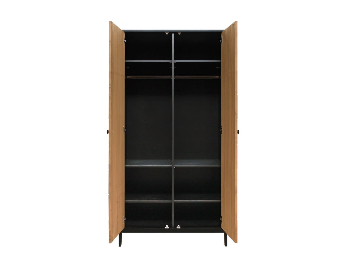 Bopita 3-Delige meegroeikamer van de serie Job kenmerkt zich door de combinatie van mat zwart en gefineerd hout in visgraat motief. De 3-delige kamer bestaat uit een ledikant, commode en 2-deurskast. De bodem van het bed is in hoogte verstelbaar. Zodra het kind groter wordt, of zichzelf kan optrekken aan de spijlen, kan je de bodem verlagen. Zo blijft het bed een veilige plek. Combineer deze kamer met bijvoorbeeld het wandelement van Job. Zo creëer je eenvoudig nog meer opslagruimte boven de commode. Aangezien het een natuurproduct betreft kan de houtstructuur per meubel van de serie Job verschillen.
