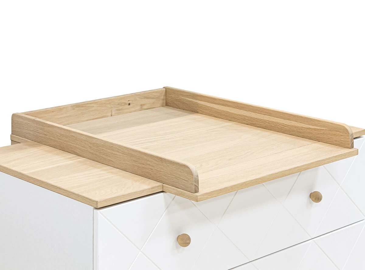 Zorg voor een ergonomische verschoonplek met deze Bopita bladvergroter. Doordat de baby recht voor je ligt gaat verschonen een stuk makkelijker. Het vergrootblad steekt aan de voor- en achterkant van de commode iets uit, hierdoor komt het meubel circa 10-15 cm van de wand af te staan.