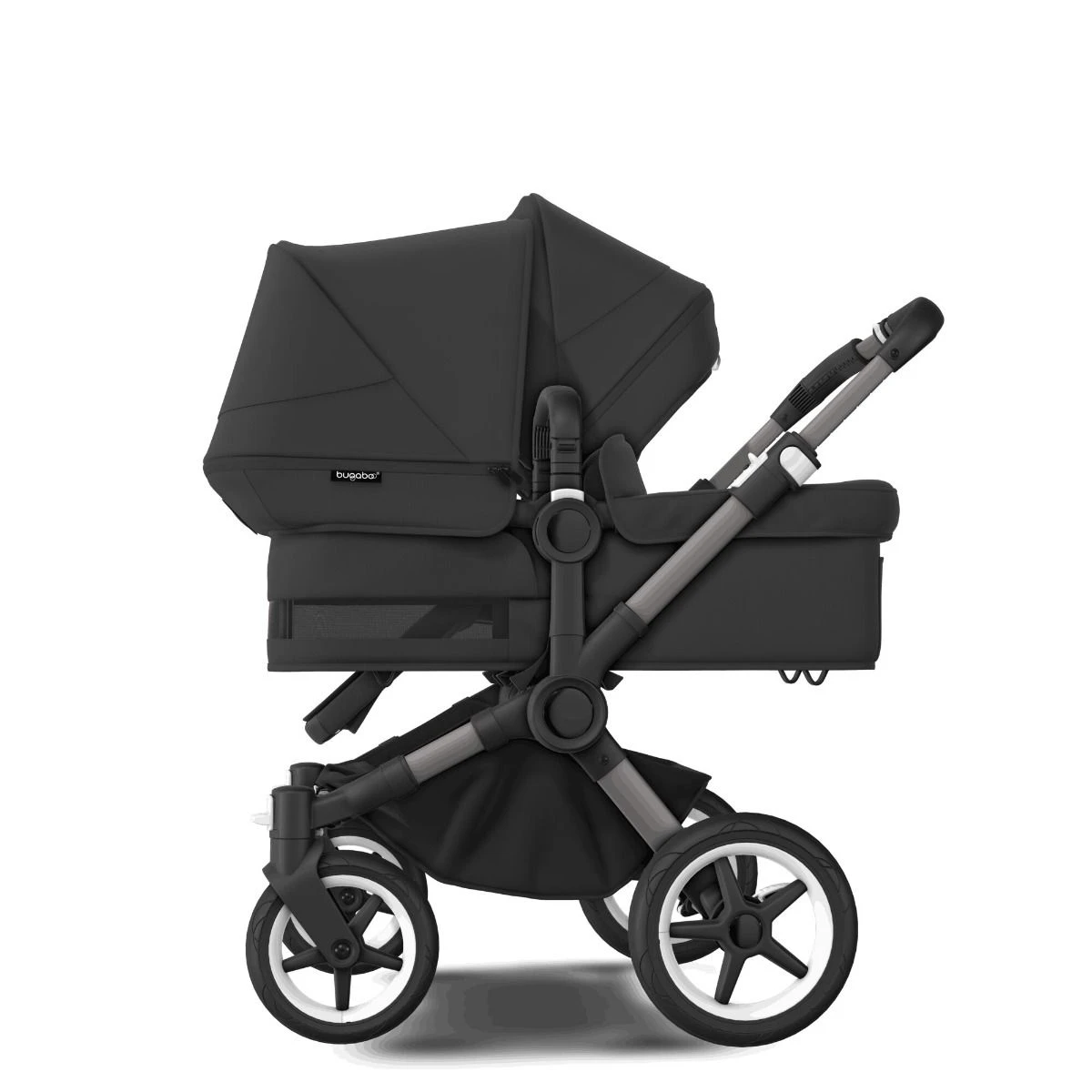 De Bugaboo Donkey 5 Duo is een dubbele kinderwagen die in slechts 3 klikken in een enkele kinderwagen kan worden veranderd. De Bugaboo Donkey 5 Duo is de kinderwagen die met je gezin meegroeit, en klaar is voor de toekomst. Zo kunnen twee kinderen comfortabel samen de wereld om hen heen leren kennen.