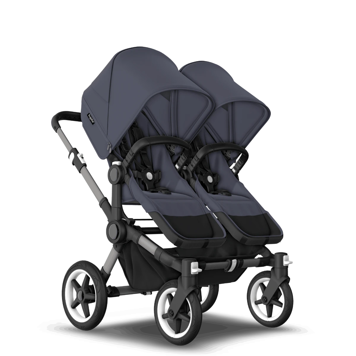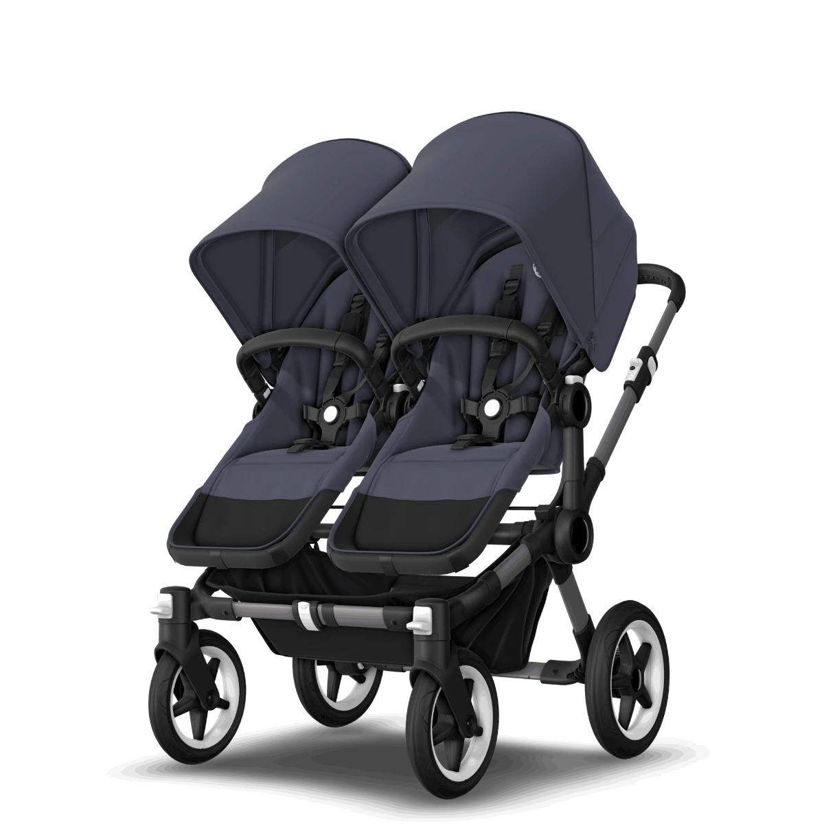 De Bugaboo Donkey 5 Duo is een dubbele kinderwagen die in slechts 3 klikken in een enkele kinderwagen kan worden veranderd. De Bugaboo Donkey 5 Duo is de kinderwagen die met je gezin meegroeit, en klaar is voor de toekomst. Zo kunnen twee kinderen comfortabel samen de wereld om hen heen leren kennen.