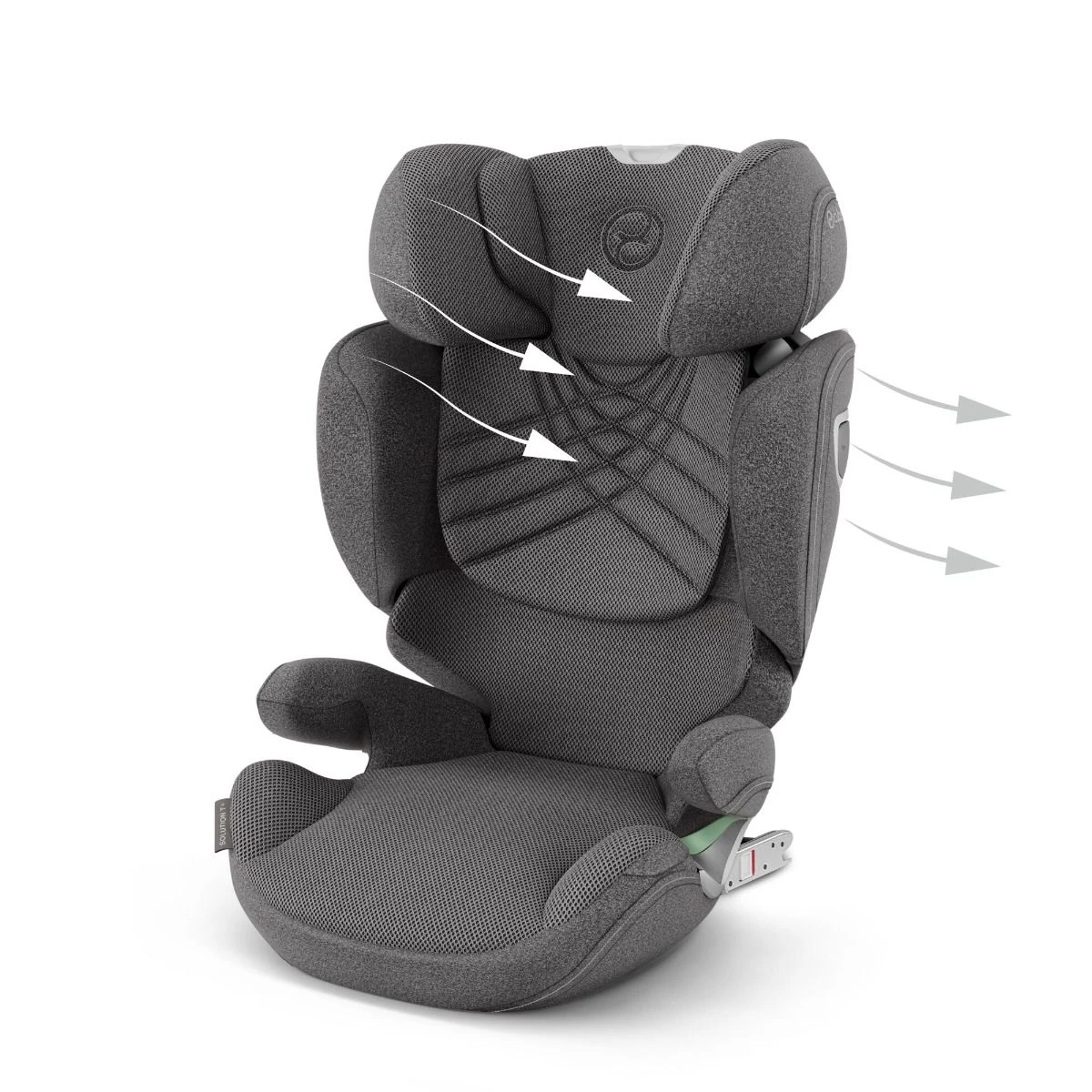 De Cybex Solution T i-Fix zit boordevol veiligheidsfuncties, zoals een gepatenteerde verstelbare hoofdsteun die helpt om het hoofd van je kind tijdens je reis in een veilige positie te houden, evenals geavanceerde Linear Side-impact Protection. Een verstelbare hoofdsteun en automatische breedteverstelling zorgen ervoor dat je kind altijd comfortabel in de stoel zit. En een verkoelend luchtventilatiesysteem houdt de ritten het hele jaar door aangenaam.