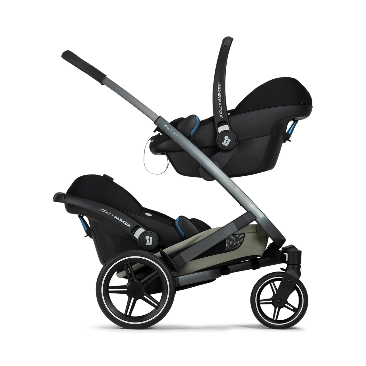 Met de Joolz Geo 3 onderste autostoel adapters klik je eenvoudig de autostoel onderop het frame van je Joolz Geo 3 kinderwagen. Hierdoor hoef je nooit meer te slepen met een onhandig autostoeltje.