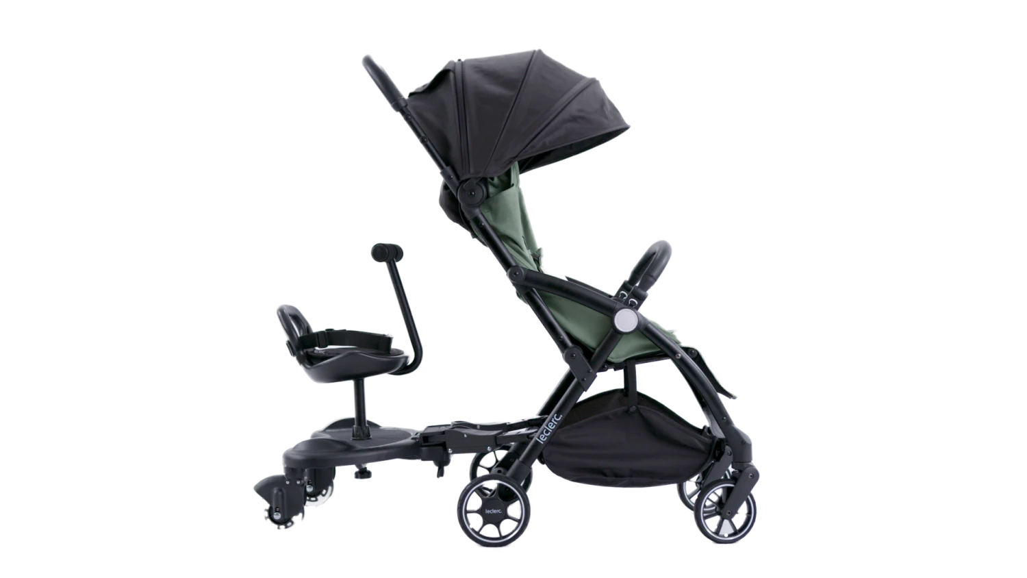 Met het Leclerc meerijdplankje kunnen kleine voetjes even uitrusten bij kleine broer of zus wanneer het nodig is. Het meerijdplankje heeft ook een zitje welke er eenvoudig op en af geklikt kan worden.