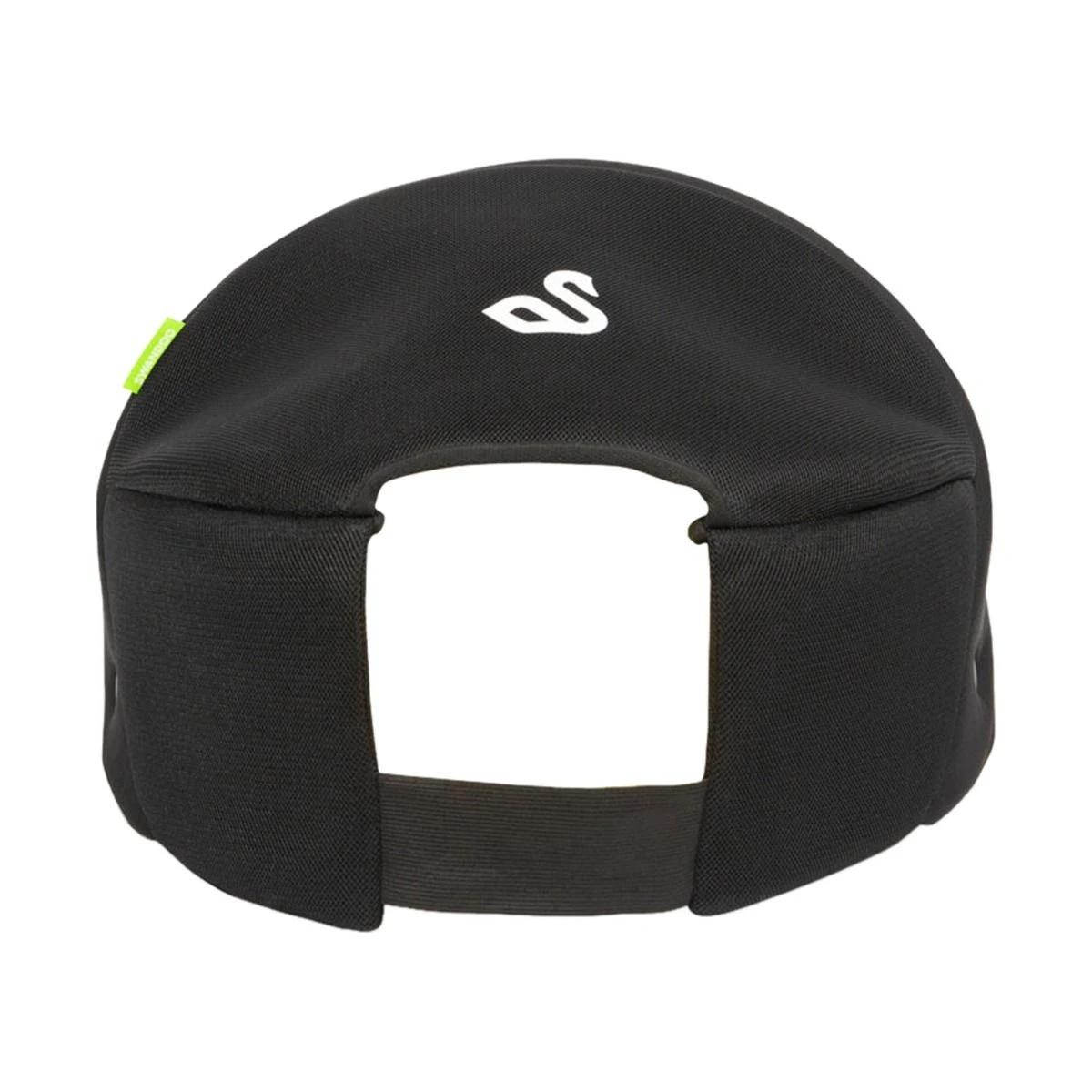 De zonnekap is te bevestigen aan de buitenkant van de hoofdsteun, druk de klikbevestigingen aan beide zijden in en trek de riem van de hoofdsteun door de opening in de achterkant van de zonnekap.